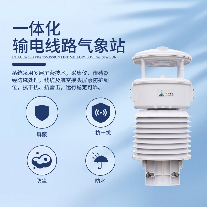 一体化输电线路气象站现如今气象物联网时代开发的全新一代数字高精度专业气象仪器。本产品具有气象要素监测、气象数据采集、历史数据存储、气象信息传输、扩展气象参数、联动设备控制、云端数据分析、绿色电源供电、预警大屏显示、便携快速安装十大功能集于一身。